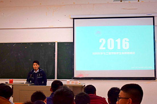 为了提高学生干部队伍的综合素质和业务水平,培养其新闻写作能力,12月4日下午,材料学院分团委在5103教室举办了主题为“如何写好新闻”主题培训会,材料学院近百名学生干部参与了培训。培训会由校大学生记者团团长陆玉主讲。