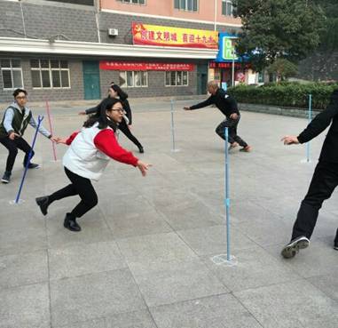 活动前,工作人员首先讲解了游戏规则并提醒大家在快乐享受游戏的同时也要注意自身安全,具体的游戏规则为:6个人站到指定的地方,一个人手上握着一根撑衣杆,时间到了就得放下手中的撑衣杆去拿下一个人的撑衣杆,顺时针或者逆时针转圈,掉落一根撑衣杆时间加2秒,一共转5圈,记录最终耗费的时间。该游戏的主要目的是增加团队成员之间的默契度和团队协调能力,通过相互配合完成任务,同学们在游戏的过程中,笑声阵阵,现场氛围轻松愉悦,温馨而和谐。