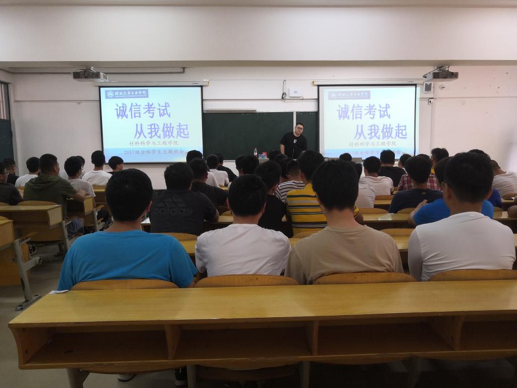 为全面贯彻落实学校考风考纪要求,进一步加强考风考纪教育,增强学生诚信意识,树立良好学习风气,共创良好考试环境,6月2日晚,材料学院各年级组织开展了“诚信考试,从我做起”主题班会。