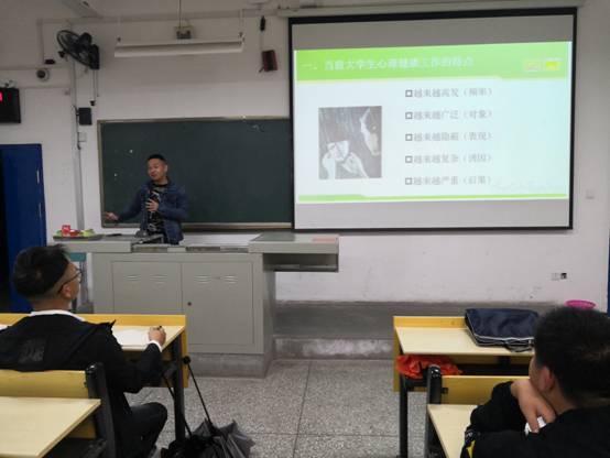 培训中,骆无思老师首先从国内媒体报道的几起大学生心理危机事件谈起,分析了秋季为何是各类心理问题的高发期,并详细阐述了什么是心理危机、心理危机的表现以及当下应该特别关注的12类人群。强调心理委员及寝室安全信息员作为心理健康教育工作中的中坚力量,要积极关注周边同学的异常情况,主动宣传心理健康常识,发现问题要及时报告。现场骆老师就异常情况如何报告,向谁报告及报告中常见的困惑与同学们进行了交流。