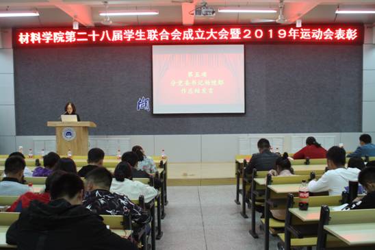11月3日下午15:00,材料学院在6113教室召开第二十八届分团委、学生会成立大会暨校第四十届田径运动会表彰。院分党委书记杨陵郧、副书记崔海英、全体辅导员、班长团支书及大一学生参加了此次大会,大会由新一届学生会副主席陈靖主持。