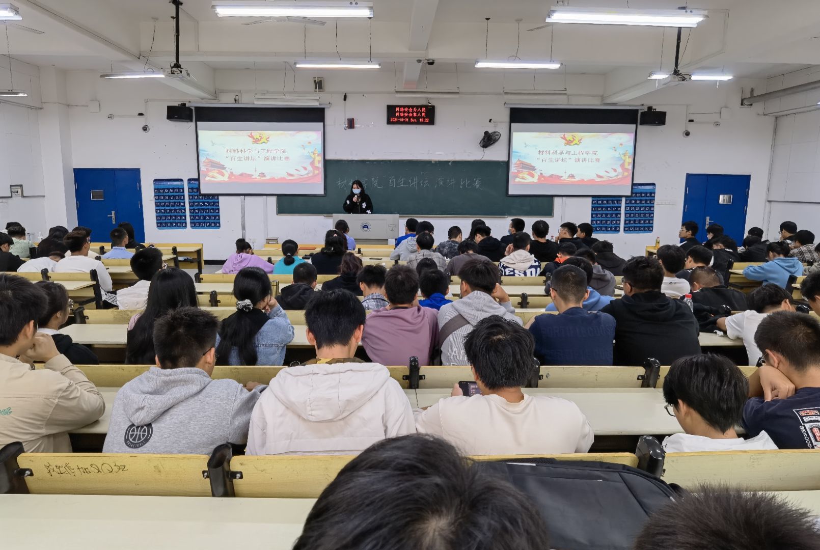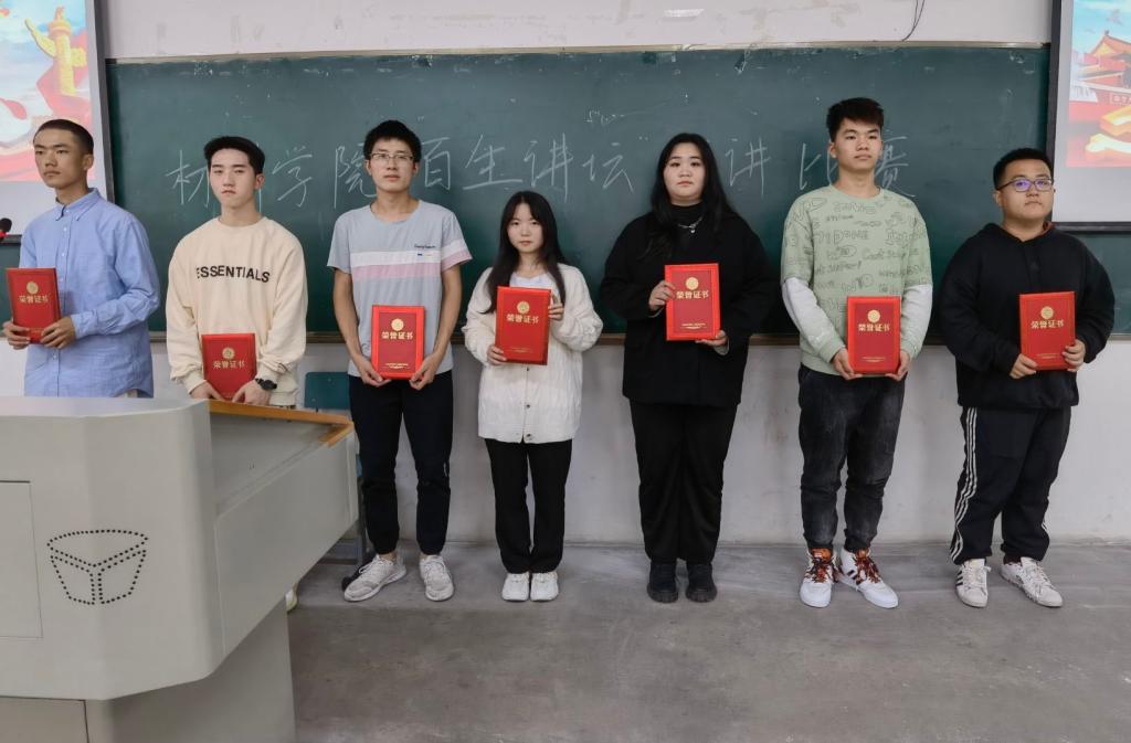 为了进一步营造浓厚的校园文化氛围,丰富学生的精神文化生活,培养学生开拓创新的科学精神,材料学院于10月31日14时30分在6111教室开展了“百生讲坛”演讲比赛。此次比赛由辅导员李诗老师、王誉翔老师、2020年省级“百生讲坛”三等奖获得者马慕雨同学、2020年校级“百生讲坛”二等奖获得者汪利俊同学担任评委。