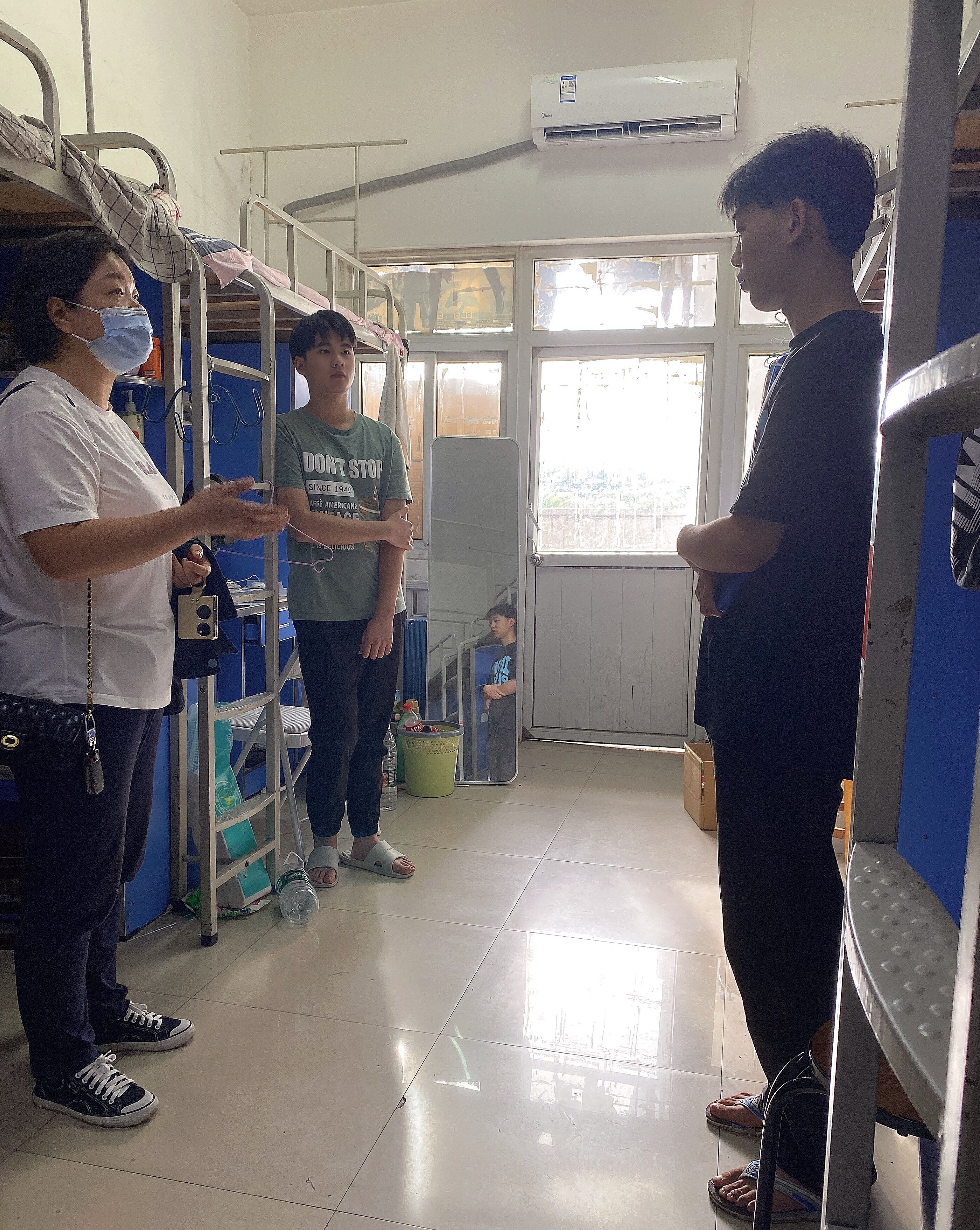 每到一间宿舍,崔海英都与同学们进行亲切交谈,关心大家的学习、生活、就业等情况,听取同学们所遇到的困难和疑惑。崔海英就疫情防控、线上线下学习安排、宿舍环境、毕业就业等与学生进行交流,鼓励同学们养成良好的生活习惯,加强体育锻炼,并鼓励同学们做好未来规划,提高抗压能力,积极主动就业。同时,希望同学们理解并自觉遵守学校疫情防控管理规定,树立大局意识和全局意识,争做新时代新青年。