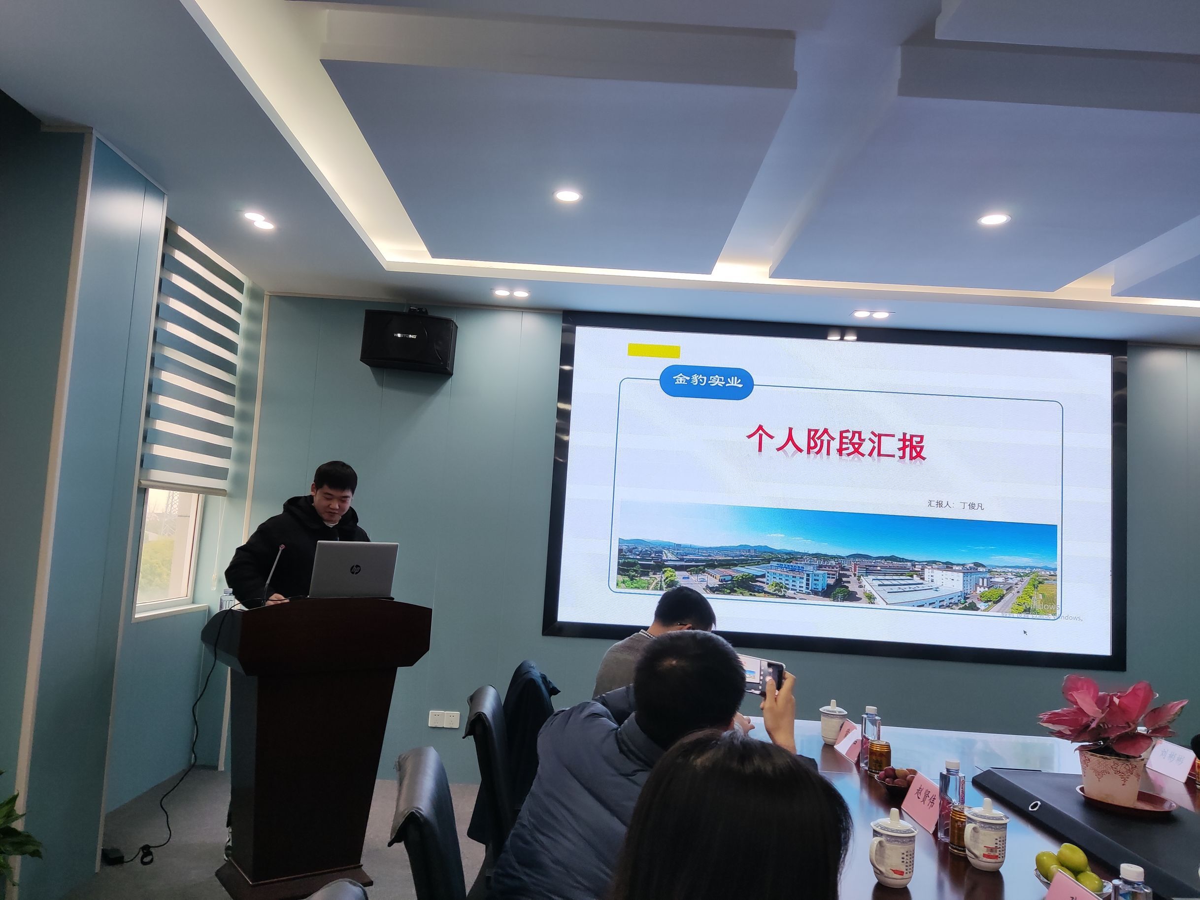 上海金豹实业股份有限公司总经理、9513级校友郭定兵对材料学院一行人员的到来表示热烈欢迎,并就企业的发展历程、主要业务、硬件设施等情况进行了详细介绍,同时热切希望通过搭建校企合作平台,能有更多优秀的毕业生来企业发展。接着,材料学院19级丁俊凡、汪文杰两名同学汇报了“校企协作育人”阶段性成果及实习感悟。