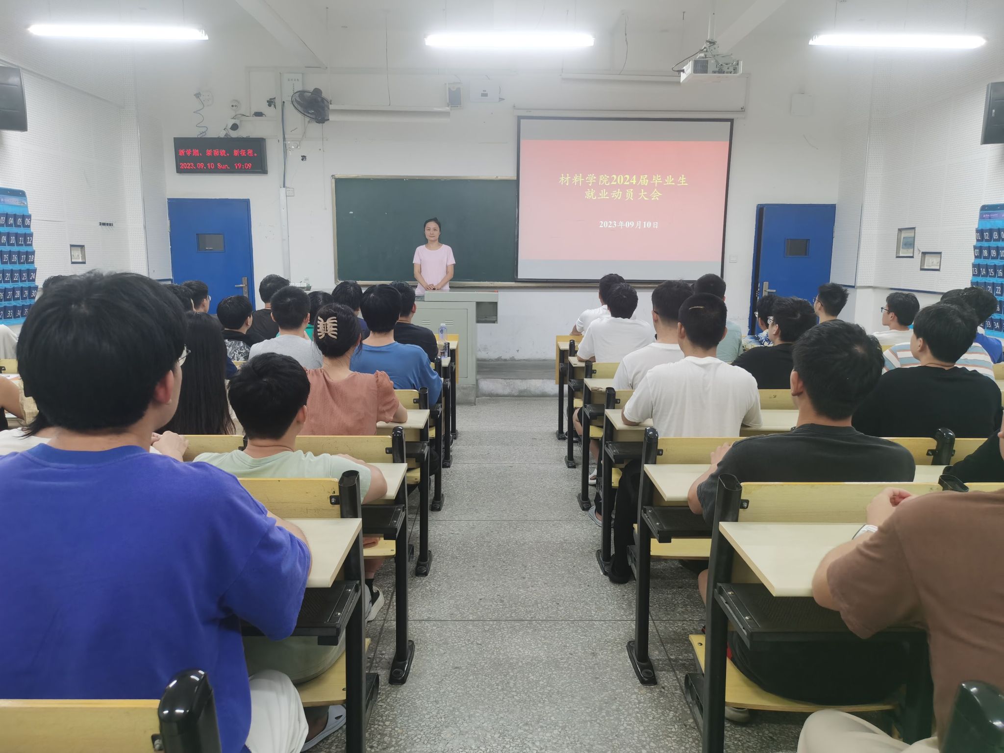 为扎实推进材料学院2024届毕业生就业工作,帮助学生树立正确的择业观、就业观,提升就业效率和质量,9月10日,材料学院在6202教室召开了2024届毕业生就业动员大会,分党委副书记何君、2020级辅导员詹韩琼、2024届材料学院校本部全体学生参加了会议。动员大会由詹韩琼主持。