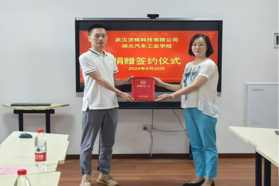 6月20日上午,武汉贤辉科技有限公司捐赠仪式在学校强国大楼510会议室举行。公司项目总监徐成、材料科学与工程学院分党委书记杨陵郧、院长助理赵齐及张春、刘建永、顿亚鹏老师出席捐赠仪式,会议由院长助理赵齐主持。
