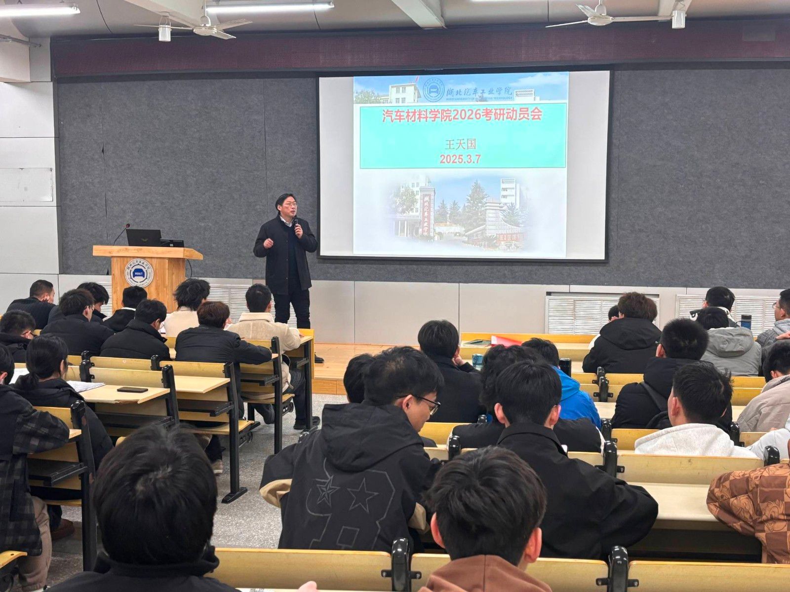 会议伊始,王天国发表了热情洋溢的动员讲话,从当前考研形势、竞争压力、备考规划等多个维度,用生动的例子和详实的数据,为同学们进行了深入浅出的分析。王院长指出,考研不仅是对个人学术能力的提升,更是对未来职业发展的重要铺垫。他鼓励同学们以积极的心态面对挑战,充分利用学院提供的优质资源,科学规划时间,合理分配精力,争取在考研这场“战役”中取得优异成绩。
