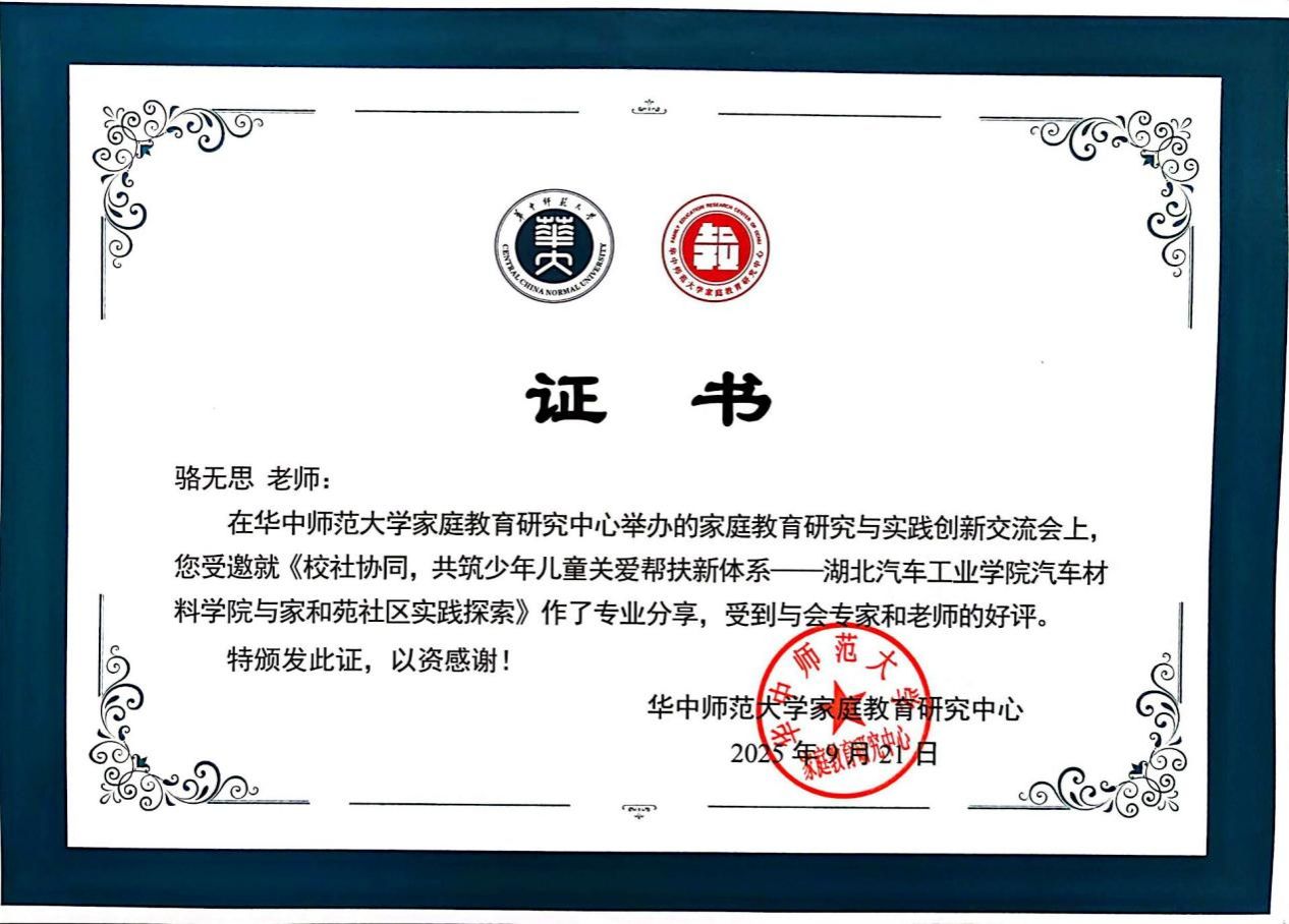 9月21日,由华中师范大学家庭教育研究中心主办、《家庭教育论坛》支持的“家庭教育研究与实践创新交流会”在华中师范大学召开。会议聚焦“家庭教育理论研究、实践创新与成果转化”,邀请知名教育专家、学者、一线家庭教育工作者共同探讨协同育人背景下的家庭教育研究与实践新理念、新思路、新方法。我校167net必赢,必赢手机app团委书记骆无思老师受邀参会,并作《校社协同,共筑少年儿童关爱帮扶新体系——167net必赢,必赢手机app167net必赢,必赢手机app与家和苑社区实践探索》主题报告。
