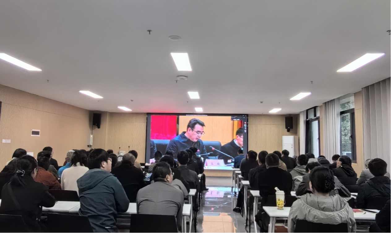 本次学校动员大会旨在统一思想、明确目标、落实责任,确保审核评估各项工作有序、高效推进。视频会议结束后,刘峰在分会场对学校会议的重点内容进行了总结和梳理,并结合学院实际情况,重点围绕专家材料调阅的规范性与及时性、听课看课的教学质量保障、座谈访谈环节的充分准备与积极表现、以及线下考察路线的精心设计与环境营造等方面,对全体教师提出了明确且具体的工作要求。他号召全院教师立即行动起来,以高度的主人翁精神和严谨求实的态度,投入到迎评冲刺阶段的各项准备工作中,确保学院在审核评估中展现出良好的精神风貌和扎实的育人成效。