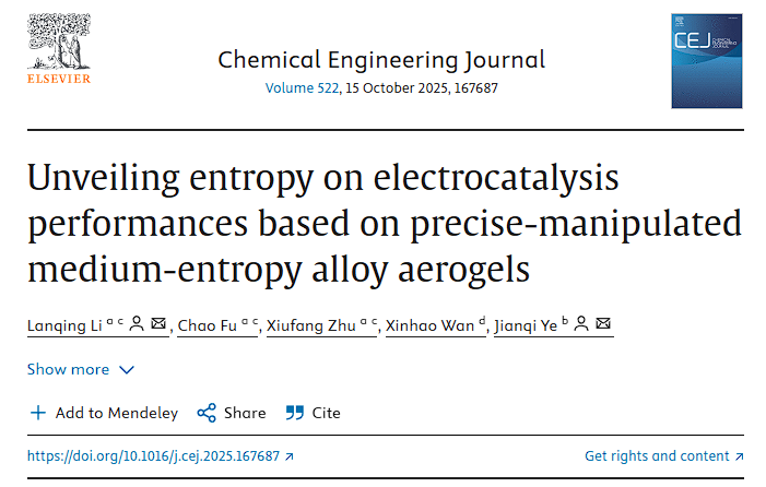 近日,167net必赢青年教师李岚青博士在期刊《Chemical Engineering Journal》(中科院一区TOP期刊,2025年影响因子13.2)发表题为“Unveiling entropy on electrocatalysis performances based on precise-manipulated medium-entropy alloy aerogels”的研究论文。