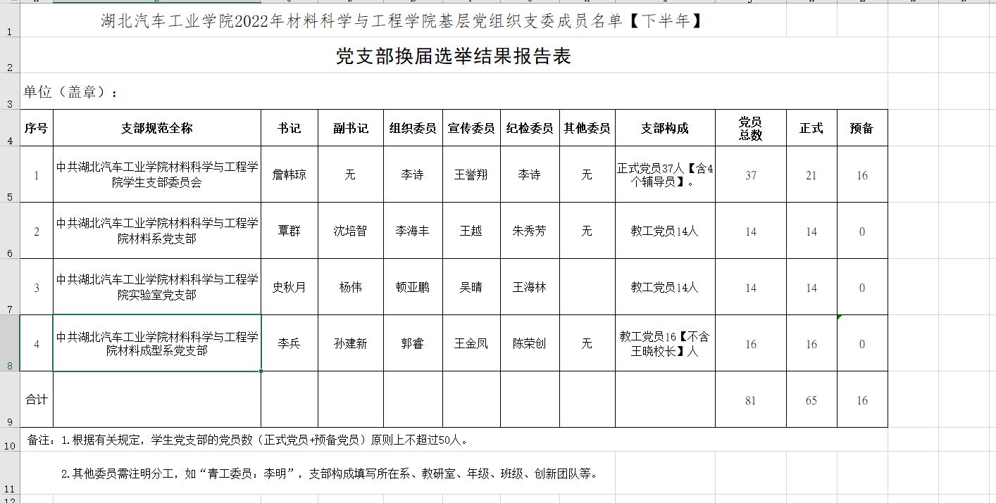 2023年材料科学与工程学院基层党组织支委成员名单