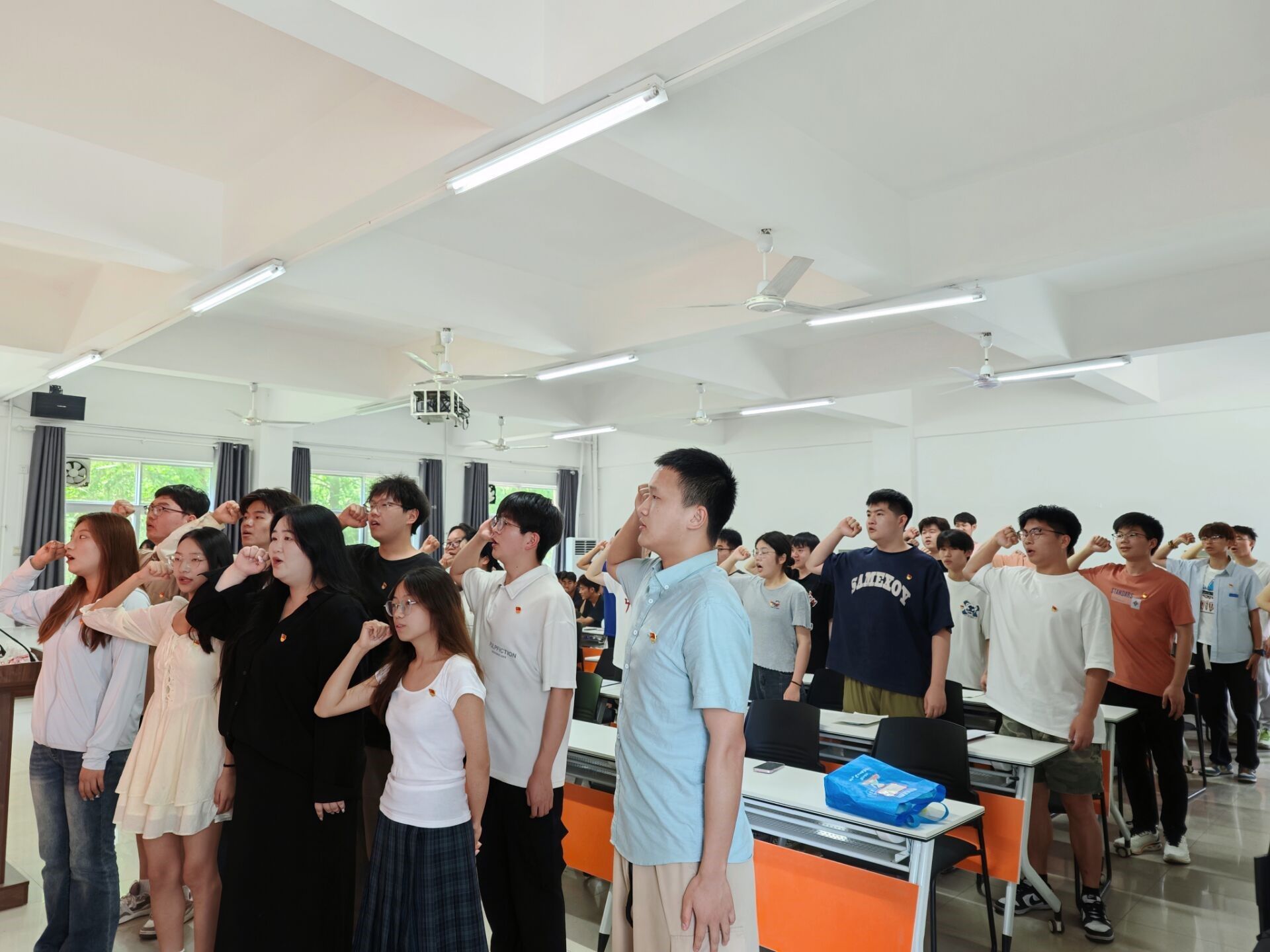 会议最后,全体党员重温入党誓词。詹韩琼做总结讲话,她希望转正的同志们要落实责任担当,勇于挑起担子,要以更高的标准来要求自己,尽职尽责。转正会议结束不是一个终点,而是一个新的起点,各位同志在以后要继续对自己严格要求,不仅在形式上入党,而且要做到在思想上入党。要坚持学习党的理论知识,时刻保持时不待我的紧迫感,只争朝夕,不负韶华,以永不懈怠的精神状态和一往无前的奋斗姿态,主动作为,真正成为一面旗帜!让青春在全面建设社会主义现代化国家的火热实践中绽放绚丽之花。