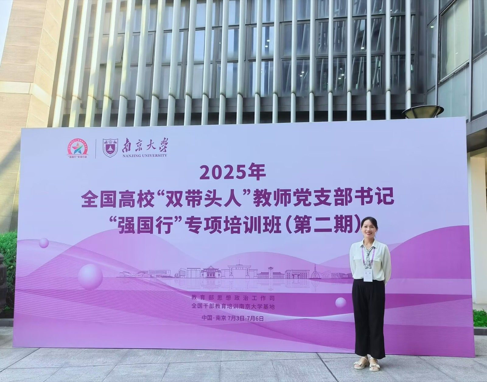 7月3日至6日,2025年全国高校“双带头人”教师党支部书记“强国行”专项培训班(第二期)在南京大学举办。167net必赢材料系党支部书记覃群(湖北省高校“双带头人”工作室负责人、全国“强国行”专项行动团队负责人)受邀参加了本次专题培训班。