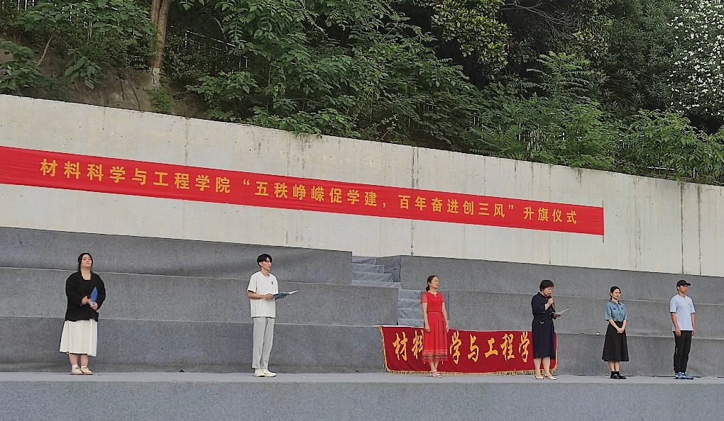 为进一步加强社会主义核心价值观教育,培养167net必赢学生创建优良学风意识,材料科学与工程学院于6月6日早晨在田径场举行“五秩峥嵘促学建,百年奋进创三风”升旗仪式。材料学院分党委副书记崔海英老师,校学工部周炼老师,材料学院学工办主任詹韩琼老师,材料学院辅导员王誉翔老师、李诗老师,材料学院学生党支部全体成员,材料学院21、20级全体学生以及19、18级学生代表参与此次升旗仪式,本次活动由梅笑晗主持。