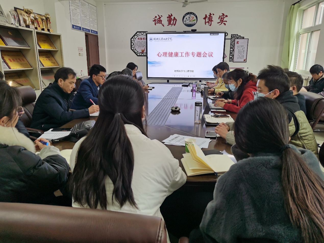 春季开学初,为深入了解、及时掌握学生心理健康状况,提升学生心理健康品质,做到心理问题及早发现、有效预防、及时干预,2月20日下午,材料学院在机材楼506会议室召开学生心理健康教育工作专题会议。分党委书记杨陵郧,全体辅导员、班主任参加会议,会议由副书记崔海英主持。