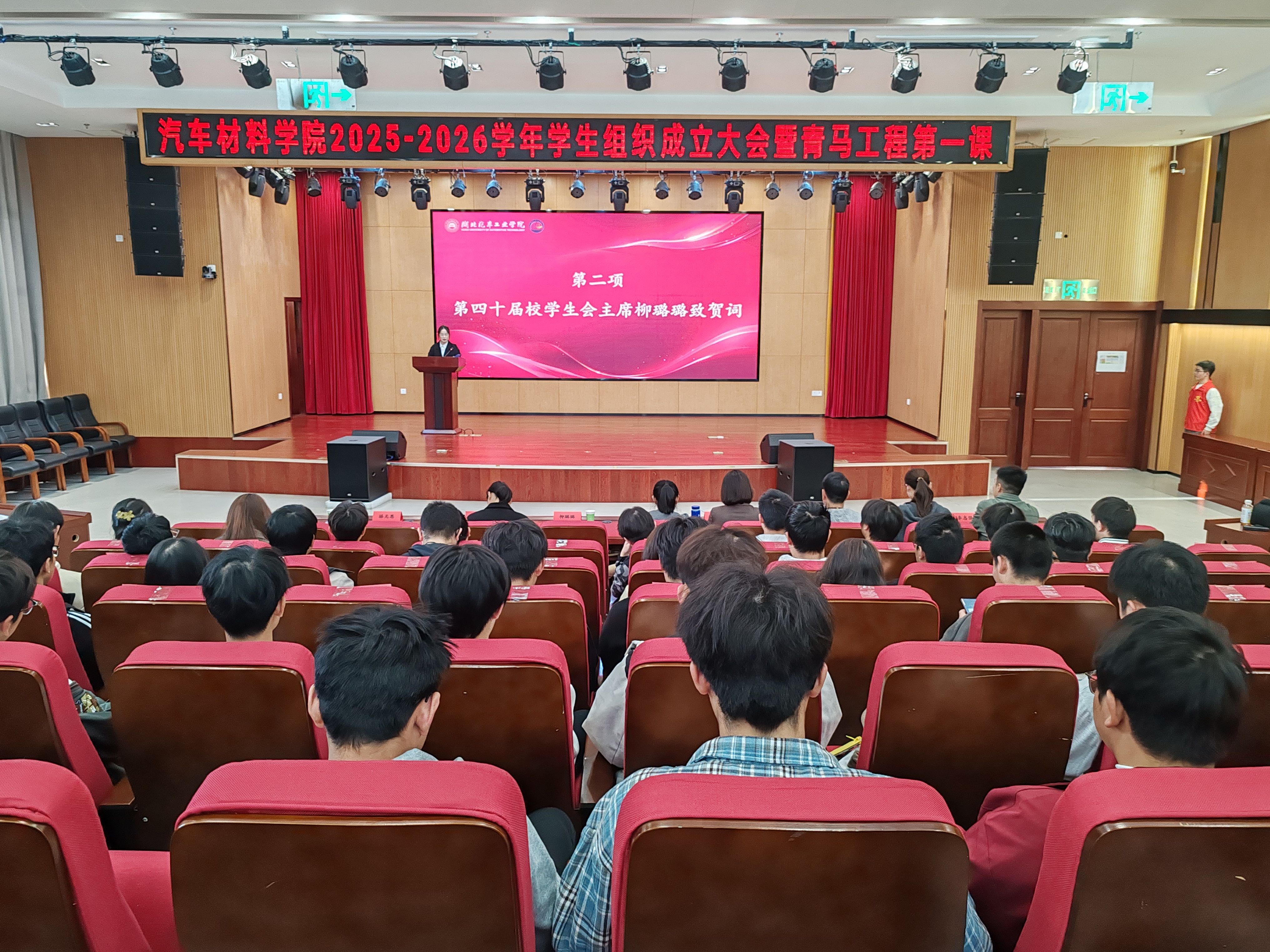 11月15日下午,167net必赢,必赢手机app在产教大楼四楼报告厅隆重召开2025-2026学年学生组织成立大会暨青马工程第一课。学院党委书记杨陵郧、副书记何君,全体辅导员、班主任代表、校级学生组织代表共计360余人参加此次活动。