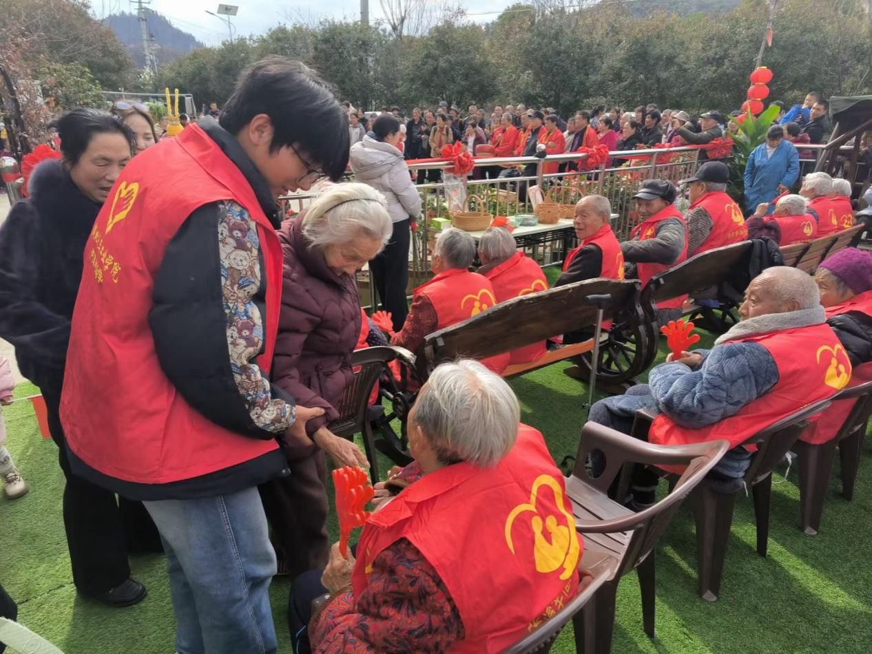 活动当天,暖阳驱散寒意,志愿者们带着精心准备的慰问品提前抵达,分工协作布置场地:挂起红灯笼、摆放小零食,瞬间让养老院充满温馨氛围。喜庆的舞龙表演率先登场,身着红衣的学子们舞动祥龙腾跃盘旋,传统民俗的魅力引得老人们拍手叫好,脸上洋溢着灿烂笑容。表演间隙,志愿者们化身“暖心陪伴者”,蹲身搀扶行动不便的老人入座,递上热气腾腾的茶水,陪老人们唠家常、忆往昔。有的细心整理老人房间、擦拭家具,有的耐心倾听老人讲述岁月故事,轻声回应着每一句叮嘱,用真诚与陪伴驱散老人们的孤单。“孩子们的到来比什么都强!”一位老奶奶紧握着志愿者的手感慨道。学子们用点滴行动诠释雷锋精神的真谛:端茶递水时的小心翼翼,搀扶行走时的稳稳当当,倾听交流时的专注耐心,无不彰显着当代大学生敬老爱老、乐于助人的良好风貌。这场跨越年龄的温情互动,不仅让老人们感受到社会大家庭的温暖,更让学子们在实践中体会到“老吾老以及人之老”的深刻内涵。