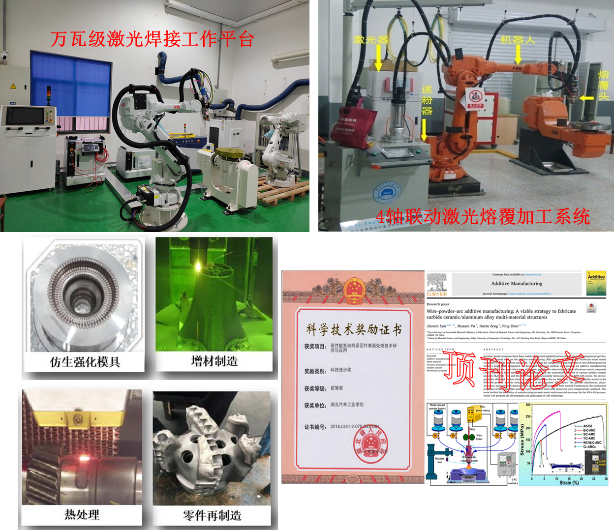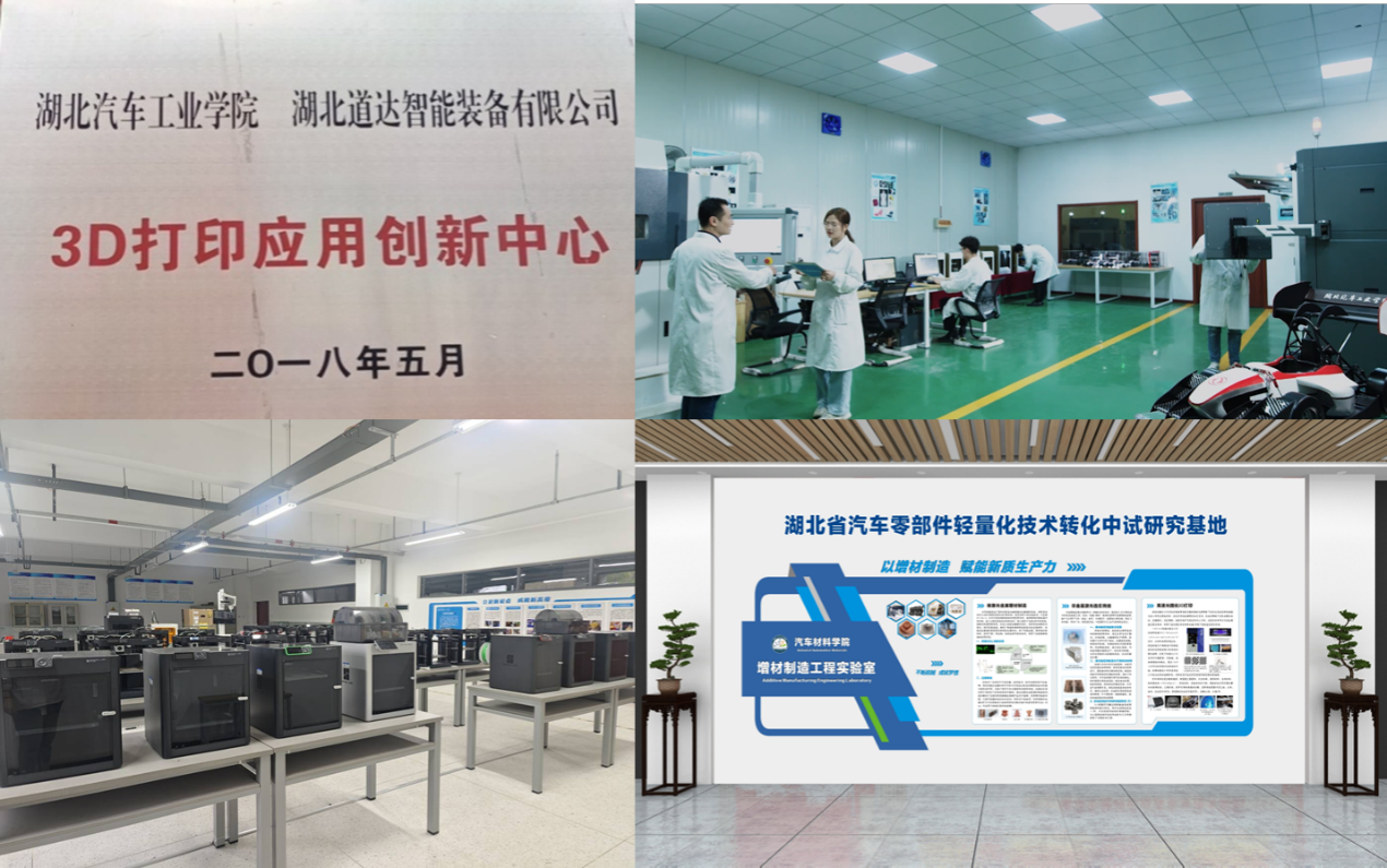 专业现建设有1个省级教学示范中心,1个省级重点实验教学示范中心,一个国家级工程实践教育中心,1个省级实习实训基地;与法国ESI-ETA控股有限公司、澳大利亚MOLDFLOW 公司、西门子公司、美国 UES公司等国内外企业联合建立了4个联合实验室和工程软件应用中心。实验场所充裕,实验用房面积达到近万平方米,拥有设备总数1000余台套,其中拥有价值10万以上的大型及精密仪器设备43台套,仪器设备资产总值2300多万元。目前,教学中使用的主要设备满足教学的需要,大部分达到本专业相关设备主流技术水平。学校于2016年引企入校,与湖北芮哲智能科技有限公司共同建立了“3D打印创新中心”,成立了“增材制造与表面强化团队”,在增材制造、表面强化、汽车零部件与模具再制造,研究内容涉及到失效汽车零部件、模具及石油、航空航天等领域其他机械设备的增材修复、3D打印及相关零部件表面熔凝、熔覆或仿生强化等方面取得了一系列研究成果。本专业教师近五年来紧密围绕增材制造和表面强化技术,先后完成以国家自然科学基金、湖北省自然科学基金等为代表的科研课题10余项,发表SCI、EI和CSCD收录的相关论文20余篇,申请专利10余项。专业教师与东风公司等汽车制造企业长期保持合作关系,合作开展模具表面仿生强化、增材修复等方面的合作研究,部分采用本专业教师所研发激光仿生强化技术的模具寿命提升2.5~3倍,取得良好工程应用效果。