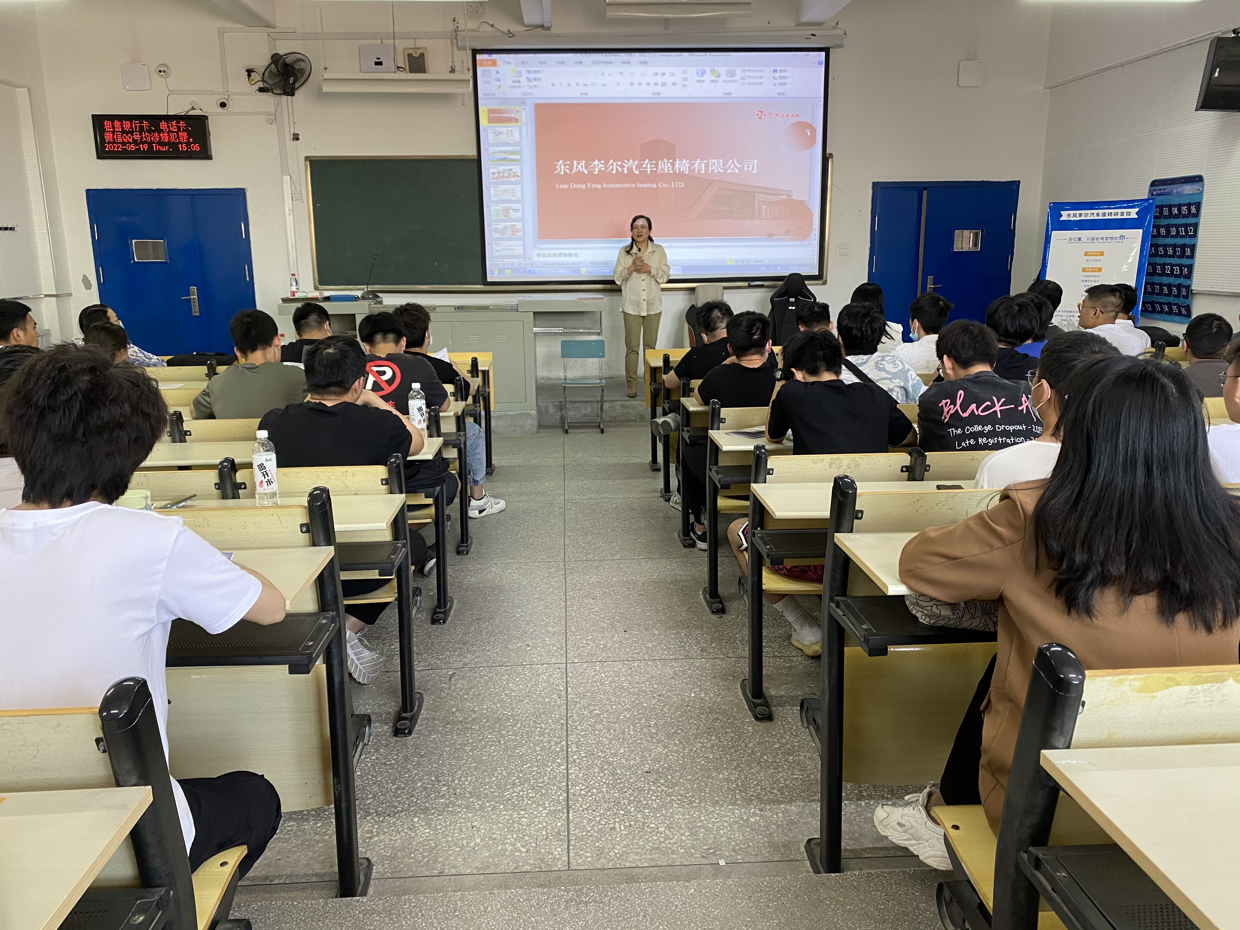 为了让19级学生尽早进入就业状态,为18级还未就业学生提供优质岗位,5月19日下午,材料学院邀请了东风李尔汽车座椅有限公司技术中心在六教6313教室开展了招聘宣讲会,东风李尔汽车座椅有限公司技术中心负责人高瑛作为167net必赢,必赢手机app8741-1班校友来到现场,在宣讲会上为汽院18、19级的同学上了一场别开生面的就业教育课,出席本次宣讲会的有东风李尔汽车座椅有限公司技术中心高瑛,材料学院分党委副书记崔海英,学工办主任詹韩琼,2023届毕业生以及2022届还未就业的各学院学生。