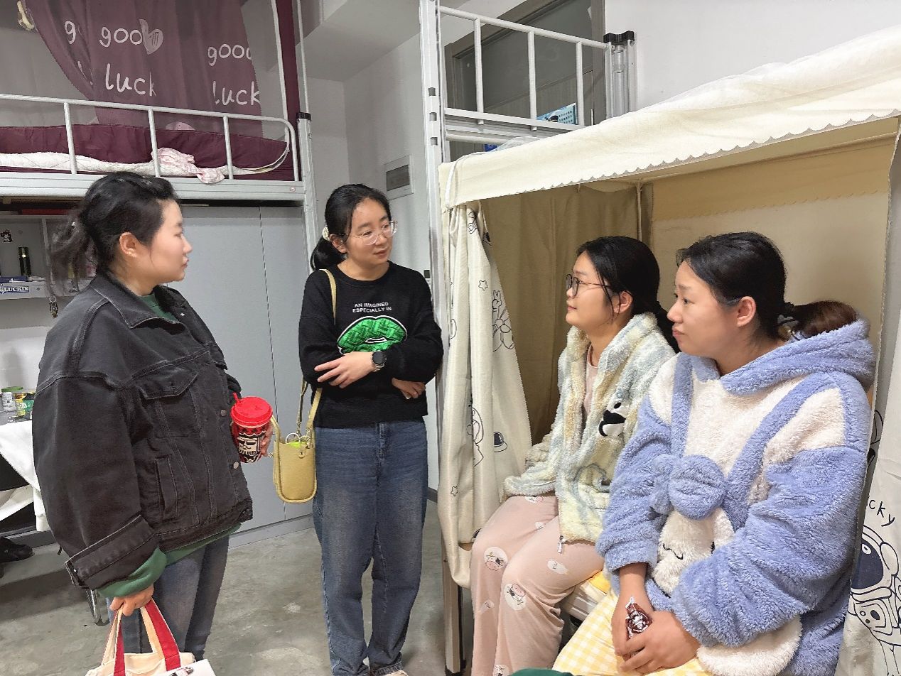 在走访期间,老师们前往自习室、学生寝室,与考研学子们进行面对面、心贴心的沟通,亲切询问学子们的复习进度、作息安排以及生活需求,耐心倾听大家在备考过程中遇到的焦虑情绪与实际困难,并为考研学生提供了专业的指导性意见。